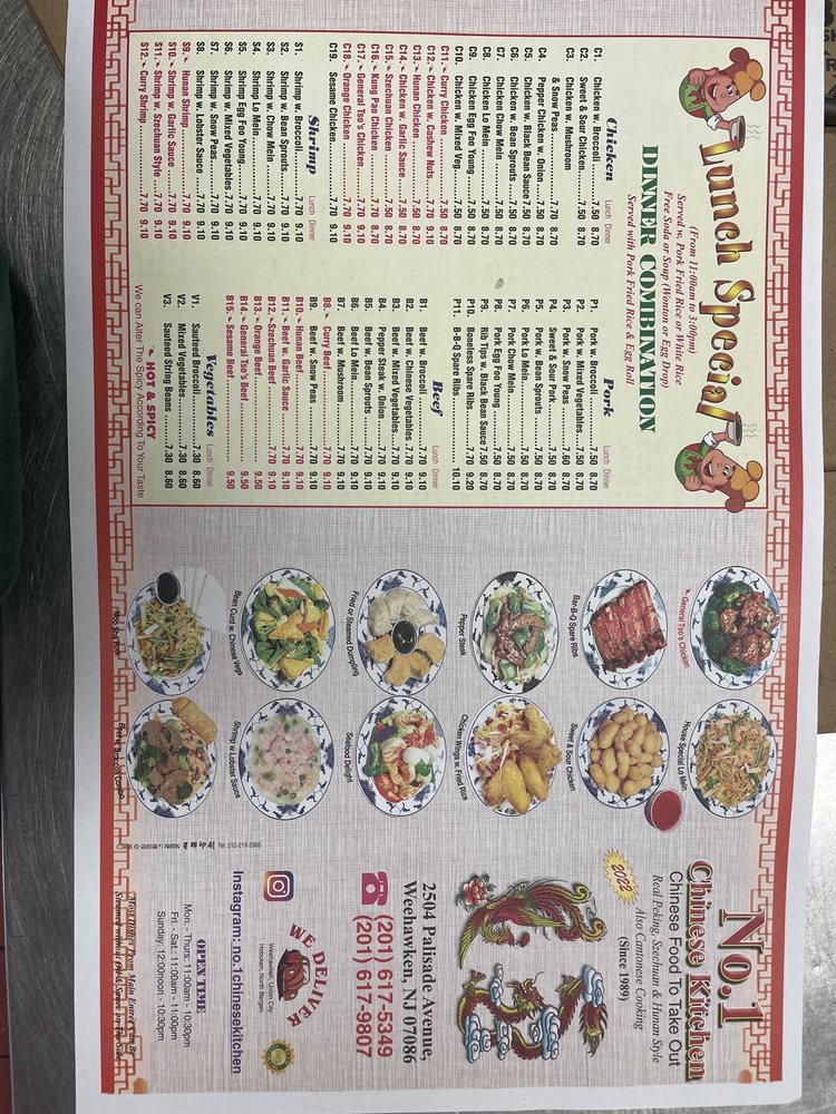 No 1 Chinese Restaurant in Weehawken, NJ, offers a vast menu of Chinese dishes with fast service and wallet-friendly prices. Customers rave about the flavorful lo mein, spareribs, and generous portions. The small interior exudes a welcoming atmosphere, making every visit a great experience. The menu includes popular options like egg drop soup, vegetable fried rice, and shrimp rolls. Regulars appreciate the consistent quality of the food, with favorites like chicken with broccoli, wonton soup, and General Tso's chicken satisfying cravings for Chinese cuisine. Delivery is available, ensuring hot and delicious meals right at your doorstep. Whether dining in or ordering out, No 1 Chinese Restaurant delivers tasty dishes at reasonable prices, making it a solid choice for satisfying your Chinese food cravings.